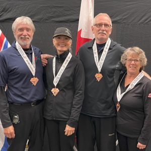 We are so pleased to announce that one of our Salmon Arm teams captured Bronze medals at the BC 55+ Summer Games held recently (Sept 9-13) in Nanaimo and area. The team was skipped by Larry Stephenson, Jane Stephenson at third, Doug Buchanan at second and our Prez Donna Shultz rounded out the team at lead.