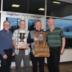 The Salmon Arm 60+ Mens team of Graham Prouse, Myles Chapin, Scott Furevik, and Doug Murray with a record of 6-1 captured both the BC Interior trophy as well as the combined BC Masters Curling Championship!