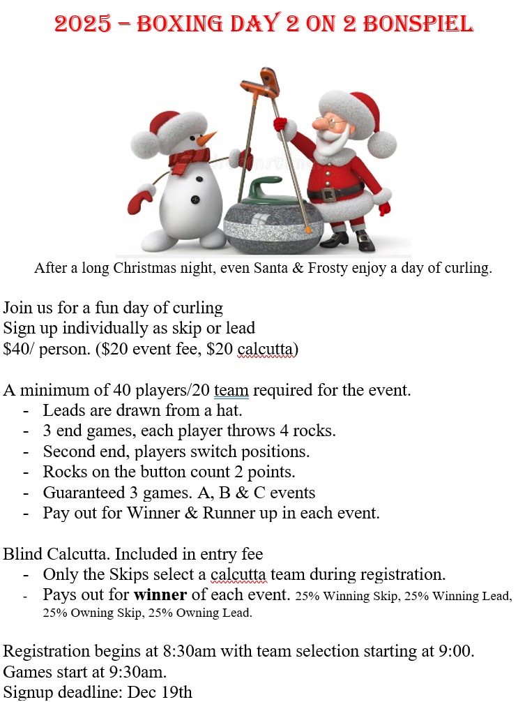 This great one-day event has curlers enter as a lead or a skip. Skips then draw their lead from a hat.