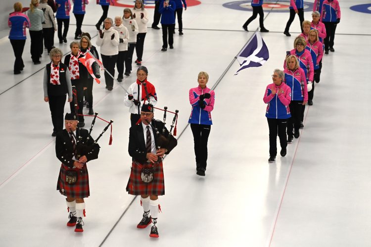 They didn’t fret even though the opening ceremonies was (justifiably) delayed as the lobby TV telecast the Men’s final from Tahoe where Scotland’s Team Mouat literally ‘edged’ (0.3 cm) Canada’s Team Dunstone for the win in the extra.